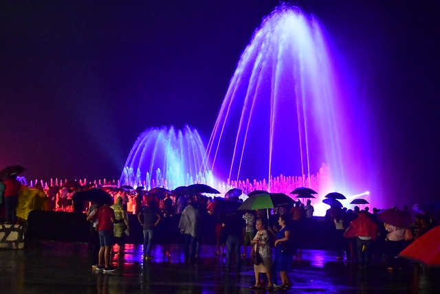 La instalación cuenta con máquinas de humo que combinan un espectáculo de luz, agua, música y color, capaz de ofrecer más de 40 mil escenarios de agua y más de 16 millones de tonalidades de luz a base de leds RGB.