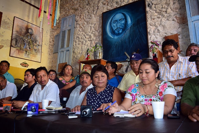 En conferencia, los líderes mayas elevaron la voz para exigir un “ya basta” a tanta destrucción de su patrimonio cultural y natural con la consolidación de nuevos proyectos agroindustriales y trasnacionales que sólo causan la ampliación del desierto verde y el fomento de enfermedades cancerígenas por la contaminación de todo el manto freático peninsular, según denunció Leydi Pech, representante de las 34 comunidades de Los Chenes.