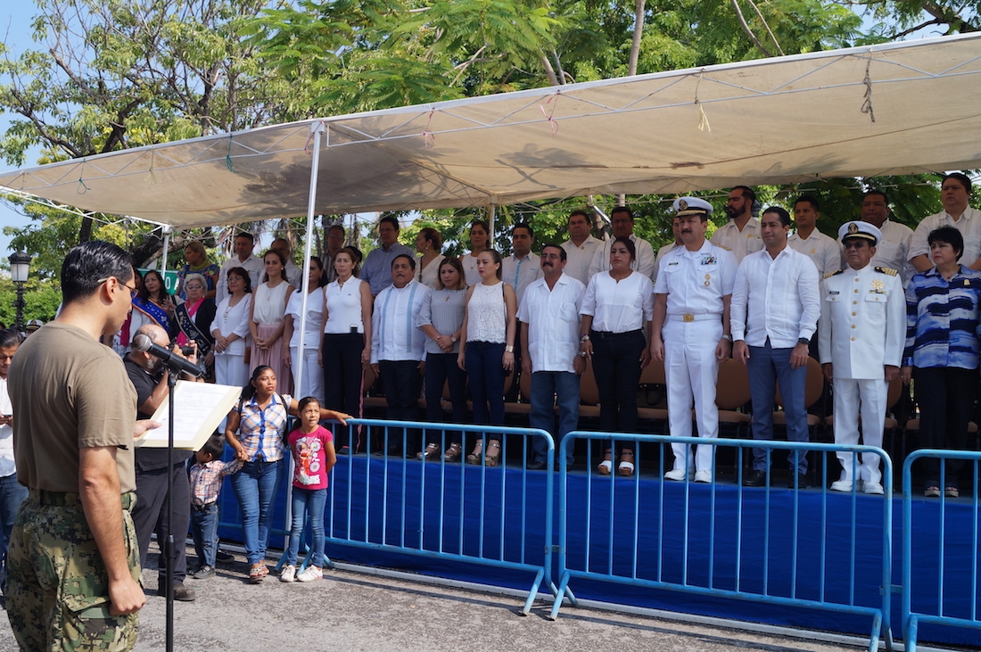 El derrotero fue presenciado por el alcalde Pablo Gutiérrez Lazarus, acompañado del comandante de la VII Zona Naval Militar, Pedro Ramón Fonseca Cárdenas, en el palco de honor instalado frente al Palacio Municipal, en el que concurrieron integrantes del cuerpo edilicio y directores de la administración municipal.