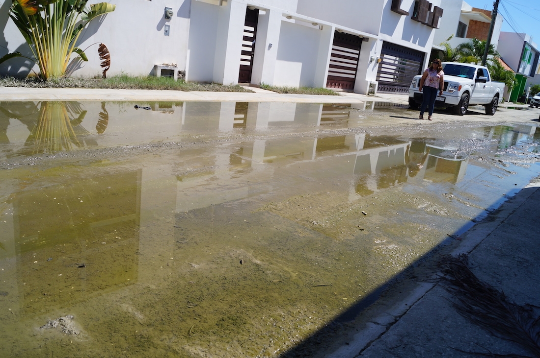 Las afectaciones a los predios coinciden con el inicio del relleno de las calles del Country Olas, mismas que se elevaron aproximadamente un metro, lo que provocó que las aguas comenzaran a estancarse, al no poder fluir de manera natural, afirmó Alicia Juan Ferrara.