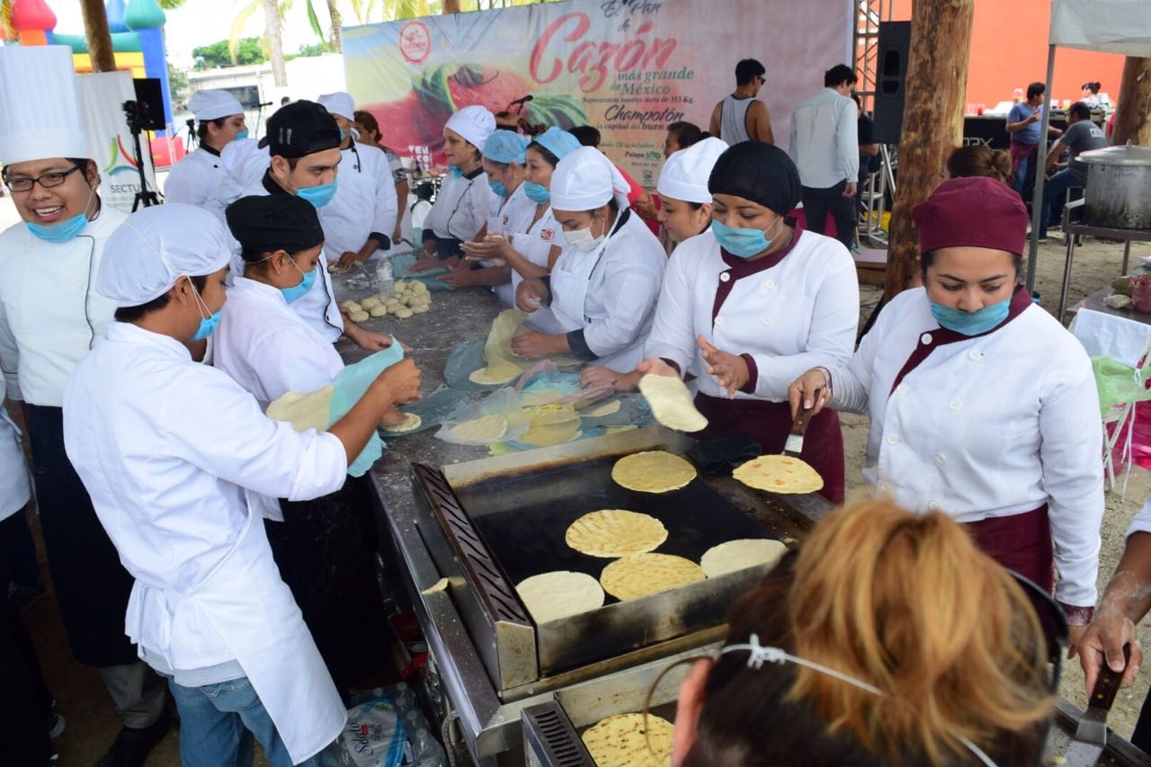 Está tarde el municipio de Champoton se prepara para superar su propio récord del año pasado de un pan de cazón de 353 kilogramos con lo que será por segunda ocasión el pan de cazón más grande de México.