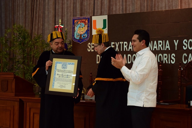 Dicha distinción fue hecha por la Universidad Autónoma de Campeche (UACAM) gracias a sus grandes aportes al campo de la medicina institucional.