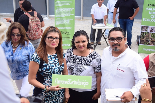 Militantes del partido Movimiento de Regeneración Nacional (Morena), encabezados por la regidora Bertha Pérez Herrera y el diputado Carlos Martínez Aké, llevaron a cabo una manifestación pacífica a las puertas del Congreso del estado, en la que solicitaron a los congresistas locales su firma de apoyo para que el alcalde Edgar Hernández Hernández no cierre o desaparezca el Centro Ecológico.
