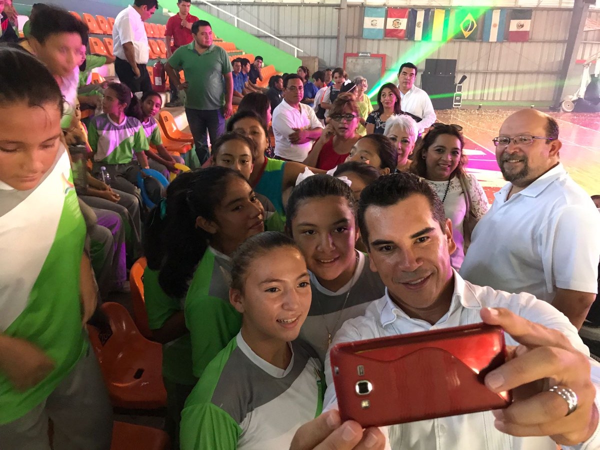 Durante la ceremonia que se llevó a cabo en la cancha techada “Manuel Prego Galera” de la Unidad Deportiva 20 de Noviembre, el titular del Ejecutivo instó a los niños y adolescentes a participar con respeto y mucha pasión, dando muestra del alto espíritu competitivo que se tiene en Campeche.