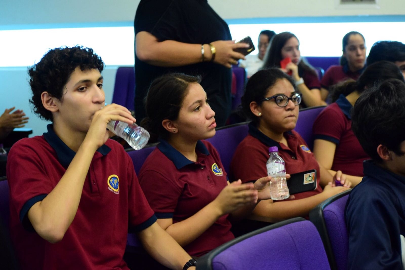 Abanicos y folders salieron a relucir para mitigar un poco el calor extremo, y empleados del Congreso repartieron botellas de agua a la treintena de alumnos de la Escuela Continental de Carmen que estaba de visita.