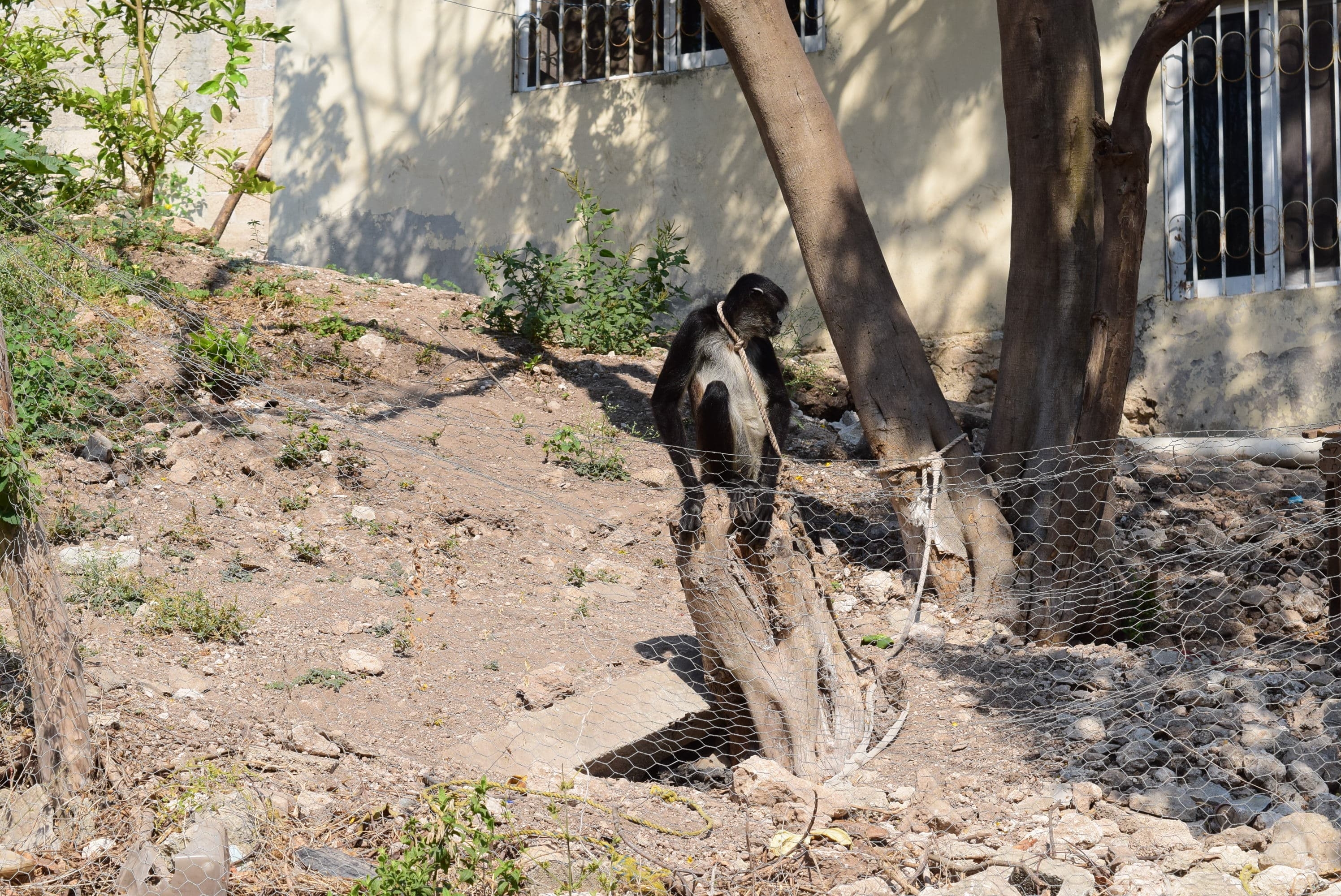 A pesar de estar prohibido por las leyes ambientales, todavía hay quienes tienen mascotas exóticas en la ciudad de Campeche, como este mono en Sambulá.
