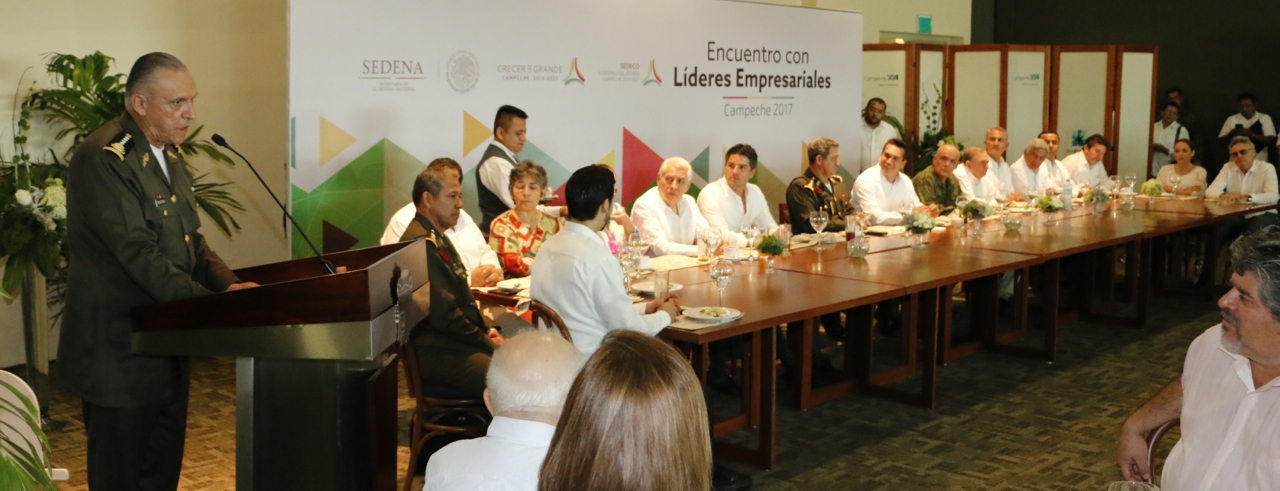 En gira de trabajo por la entidad, el titular de la Sedena celebró ayer por la tarde un encuentro con más de 50 líderes empresariales durante la cual reconoció que Campeche es la entidad más segura del país, y reiteró su compromiso de seguir trabajando de forma coordinada con las autoridades para fortalecer las tareas de coordinación en materia de seguridad.