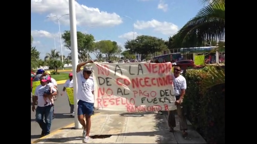 Los quejosos portaban pancartas con mensajes como "No a la venta de concesiones", "No a Uber, necesitamos trabajar" y "Basta de cobros excesivos".