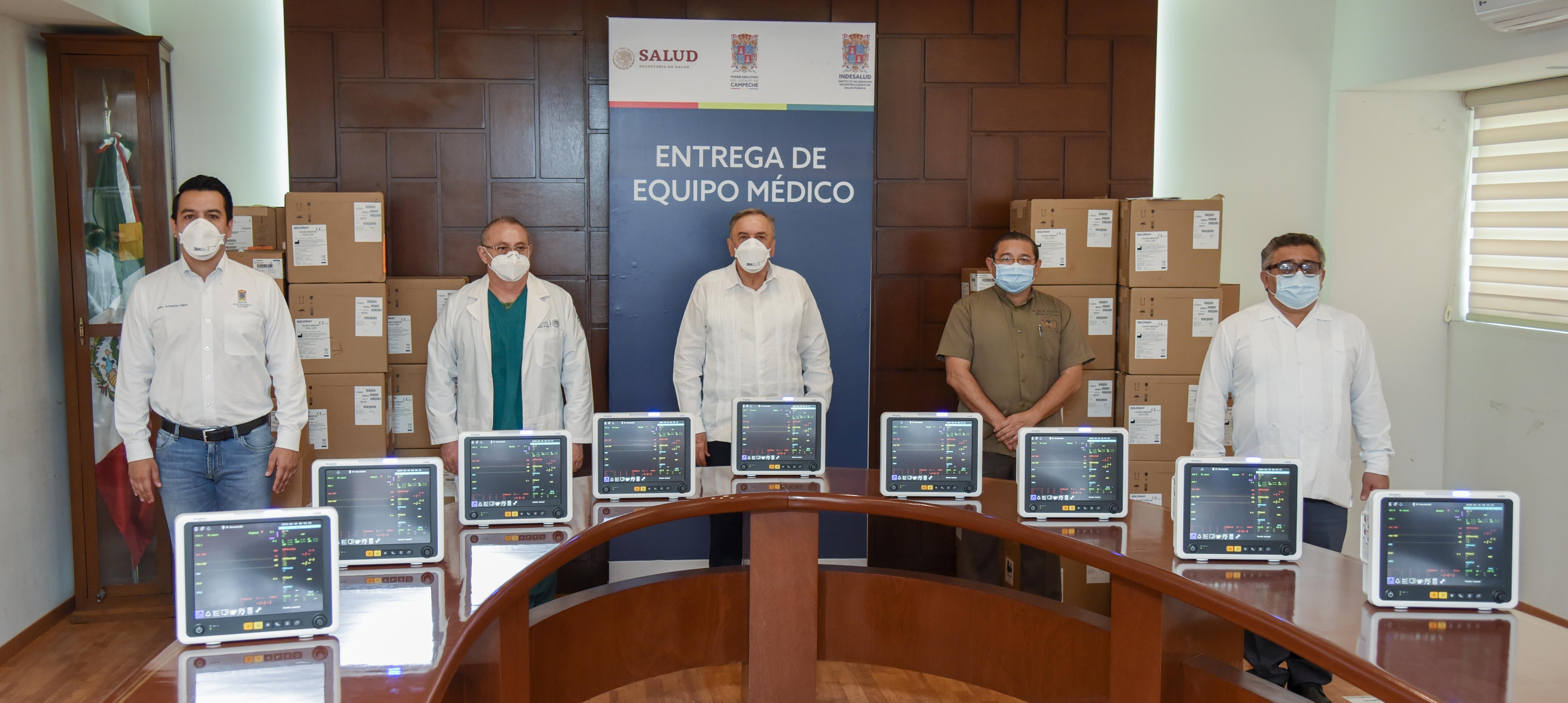 Treinta nuevos monitores de signos vitales de vanguardia tecnológica entregó el gobernador Carlos Miguel Aysa González para las áreas de cuidados intensivos de los hospitales Dr. Javier Buenfil Osorio, Dr. Manuel Campos y Dra. María del Socorro Quiroga Aguilar, con lo que se refuerza la atención médica de pacientes en estado crítico por COVID-19 en Campeche.