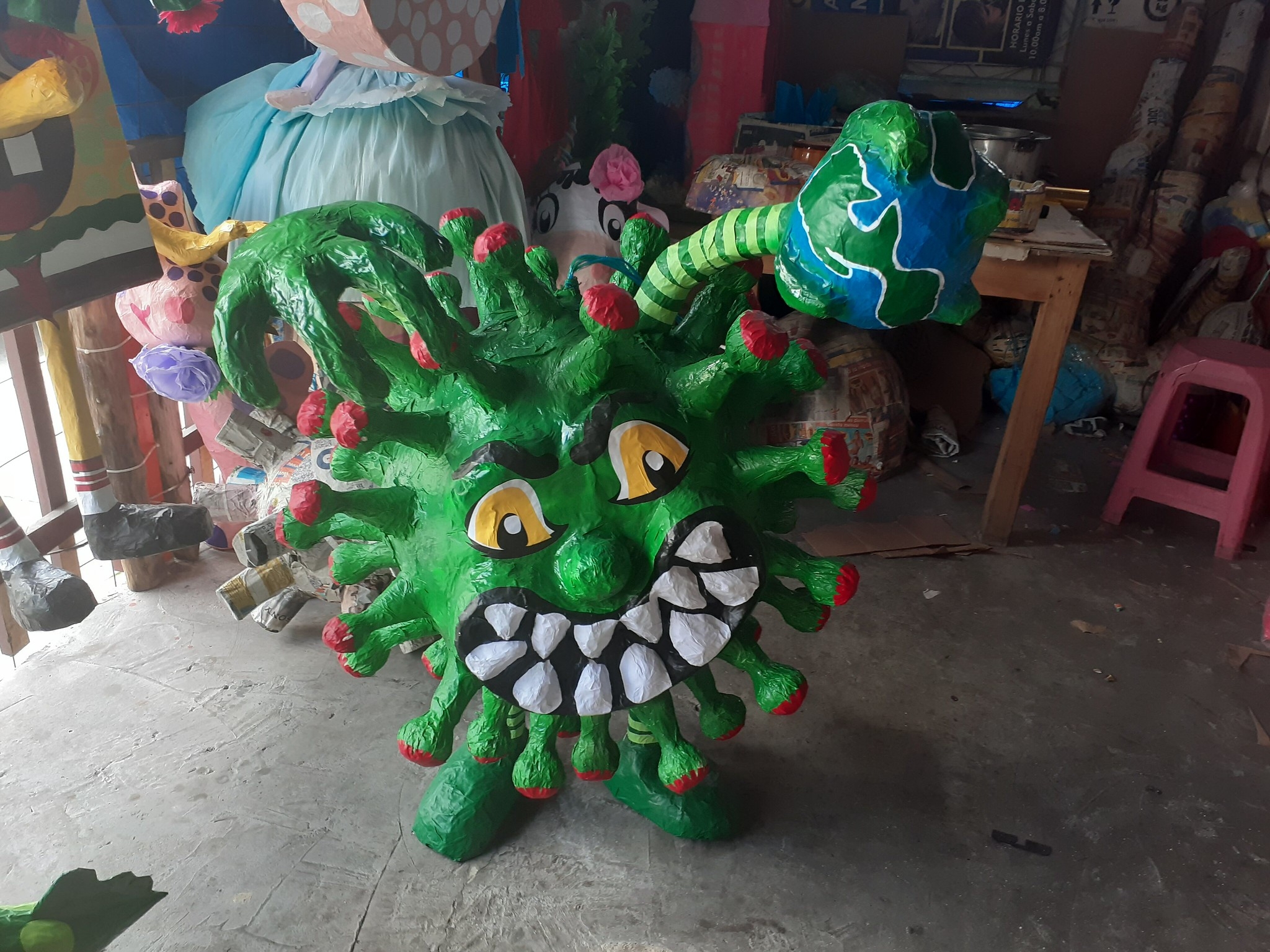 Cuestionado sobre lo que lo llevó a realizar esta creación, Domínguez Ramos señaló que “este virus nos está llevando a una lucha para enfrentarlo, para superarlo, de la misma manera en la que los niños habrán de luchar contra esta piñata para romperla”.
