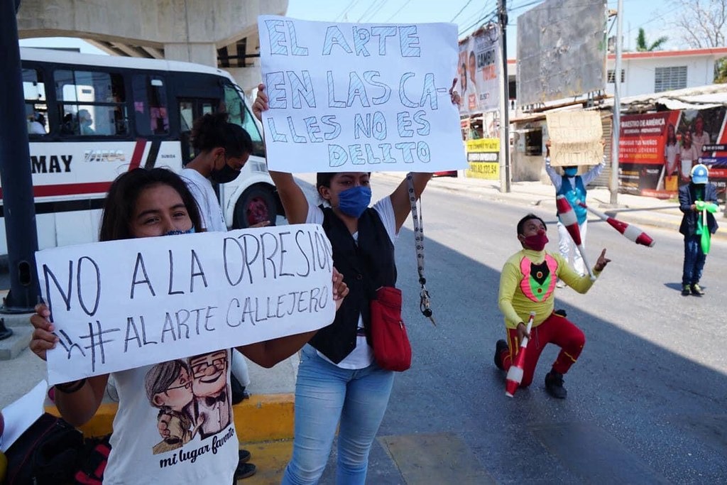 Parados en semáforos como acostumbran, pero en esta ocasión no trabajando sino manifestándose para que los dejen laborar y “obtener unos pesos” para mantener a sus familias, payasitos y artistas callejeros salieron a las calles para declarar con cartulinas. Los protestantes piden que los dejen trabajar y que no los acosen los agentes de la Policía Estatal Preventiva (PEP).
