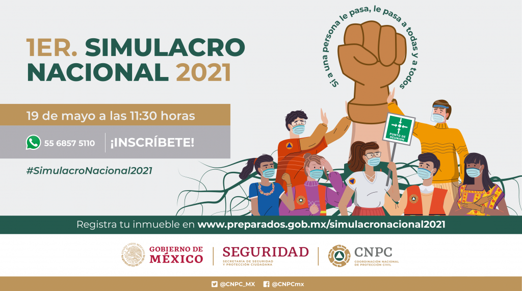 La Secretaría de Protección Civil (SEPROCI) invita a la población en general a participar en el Primer Simulacro Nacional de Evacuación de Inmuebles 2021 SINAPROC-México 2021 convocado por la Coordinación Nacional de Protección Civil, el próximo 19 de mayo a las 11:30 horas de manera simultánea en todo el país.