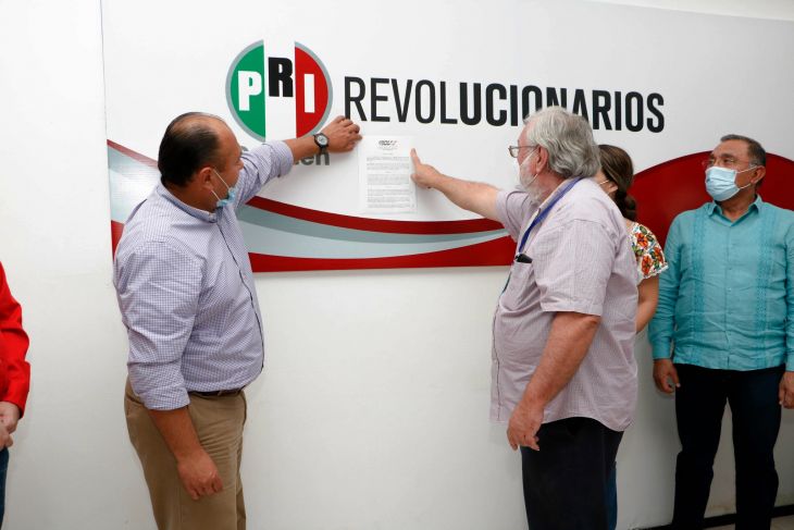 Acompañado de Ariana Rejón Abreu, secretaria general del PRI estatal; de José Enrique Zapata Acosta, dirigente municipal y del delegado del CDE en Carmen, Jorge Lazo Pech, el líder del tricolor en el estado aseguró que de manera simultánea en los 13 municipios de Campeche se llevó a cabo la colocación en estrados de la convocatoria para la XXIII Asamblea Nacional.