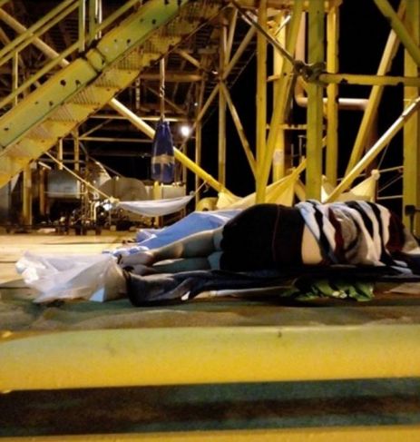 “Muchos de ellos, con algunos cabos que han encontrado y utilizando cobertores, han elaborado hamacas para poder colgarlas de los barandales, para de esta manera, aprovechar la brisa del mar durante las noches y poder dormir”.