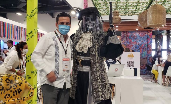 El estado de Campeche está presente en el Tianguis Turístico de Mérida con un stand encabezado por la figura de un pirata barbón de la ciudad amurallada, a las afueras del Centro de Convenciones Siglo XXI la tradición pregonera también está presente con música y bailables folclóricos de la entidad campechana.