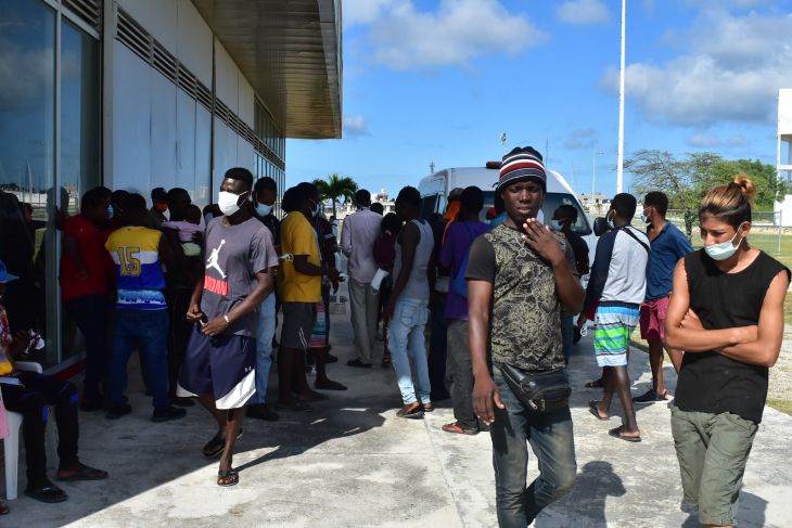 En el complejo deportivo estatal los elementos del INM permitieron dialogar con algunos migrantes, sin embargo los primeros instalados en el lugar eran de origen haitiano, por lo que fue difícil comunicarse con ellos. Además, los elementos dijeron que estaban autorizados los aspectos e imágenes, pero los migrantes no podían dar mayor informe más de lo que les dirían a las autoridades.
