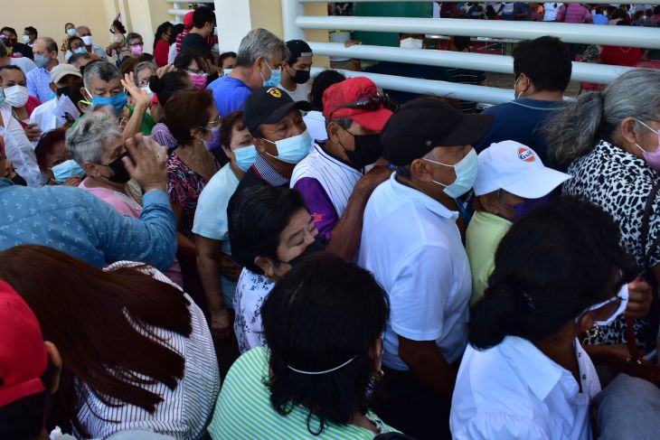 En este primer día de vacunación a las personas mayores de 60 años, pese a la programación que se llevó a cabo por meses de nacimiento, cientos de personas se presentaron para ser inoculadas, sin que se registraran incidentes.