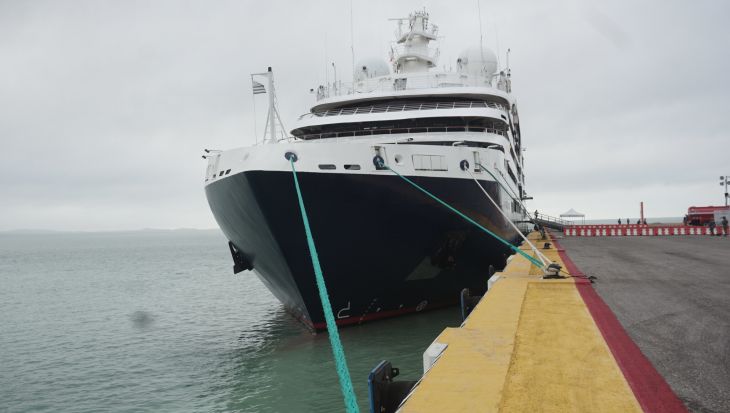 En lo que es el primero de cuatro arribos, el navío con capacidad para 202 pasajeros más tripulación llegó a Campeche, al puerto de Seybaplaya.