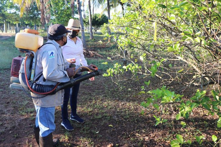 Ochoa Peña ya visitó cultivos de limón y pitahaya, con el objetivo de fomentar el uso del biofertilizante "Trichoderma", microorganismo, aplicado como control de hongos perjudiciales causantes de enfermedades en las plantas, y estuvo acompañado de los especialistas en ingeniería bioquímica, Yuliana Andrade Preza, y ambiental, Carlos Mendoza Vázquez, con quienes recorrió los cultivos que desarrollan productores de Castamay y Nilchí.