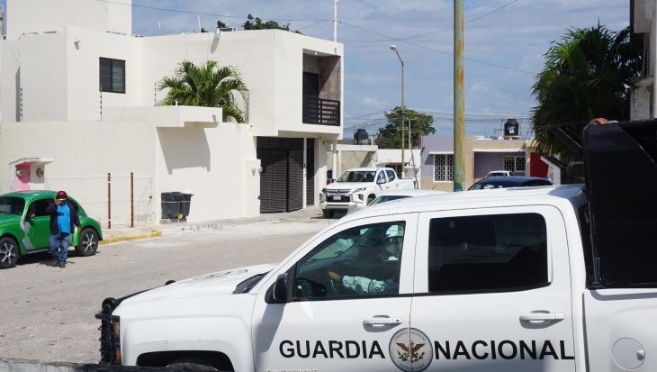 Cerca de las 12:45 horas inició el operativo, elementos de la Guardia Nacional y de la Sedena procedieron al cierre de la calle 19, entre 42 E y 42 D, en la colonia Tacubaya, para realizar el cateo a los predios ubicados frente a los oficinas de la Dirección de Seguridad Pública, Vialidad y Tránsito (SDPVYT).