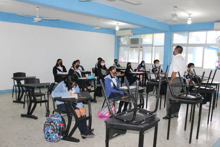 Foster Varela indicó que de acuerdo con el seguimiento que se le da al personal docente y alumnos, se puede decir que sólo cinco profesores no recibieron la dosis de refuerzo de la vacuna contra Covid-19 y más de 80 por ciento de los alumnos, cuenta con al menos una dosis.