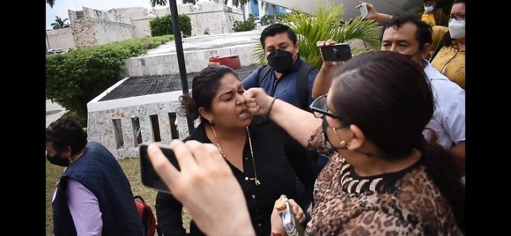 Al finalizar la sesión legislativa del martes pasado hubo un conato de pleito entre personal del Congreso del Estado y manifestantes de la Resistencia Civil Campechana, que terminó en un golpe en la cara a la manifestante Patricia Morales. Antonio Gómez Saucedo, ex diputado y representante estatal del Partido del Trabajo en la entidad, condenó dichas agresiones y pidió al titular de la Junta de Gobierno y Administración, Alejandro Gómez Cazarín, tomar cartas en el asunto.