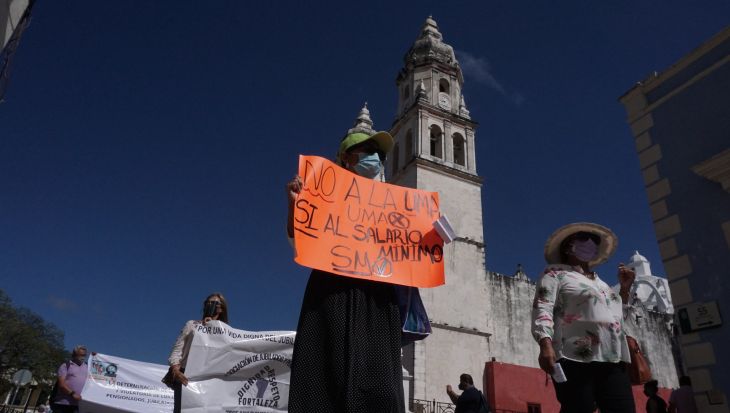 Mientras el salario mínimo ronda los 172 pesos con el reciente ajuste de aumento, la Unidad de Medida y Actualización (UMA) aplica los 96 pesos con 22 centavos. Por esto, la asociación de Jubilados y Pensionados Elpidio Domínguez Velázquez en Campeche continuará el proceso legal en contra de las pensiones tasadas en esta unidad de medida pues hasta hace unos años las pensiones eran valuadas en salarios mínimos, es decir, les redujeron el monto de pensión.