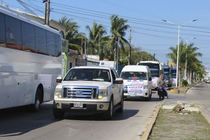 Integrantes de la Alianza Mexicana de Organizaciones de Trasportistas, A.C. (Amotac) se sumaron a la protesta nacional de transportistas por la inseguridad en las carreteras, las alzas a las gasolinas y diésel, así como a los peajes de puentes y autopistas federales, encabezados por el delegado de la organización en Carmen, Jesús Solís Montañez.