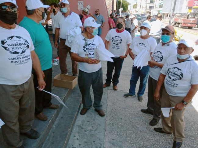 Tras hacer un pronunciamiento de arranque de campaña, por parte de su representante, Abraham Roberto Simón Díaz, los simpatizantes de la planilla Blanca, que encabeza Carlos Joaquín Montejo Vivas, iniciaron proselitismo en las Terminales Aérea y Marítima de Pemex, sin candidato.
