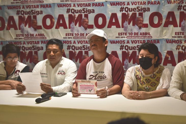 Encabezados por Juan Enrique Farrera Esponda, coordinador de la tercera circunscripción de la asociación civil nacional Que siga la Democracia, promovieron la Revocación de Mandato en conferencia de prensa tras anunciar una reunión por la tarde en el municipio Carmen con ciudadanos convencidos del trabajo de este gobierno federal.