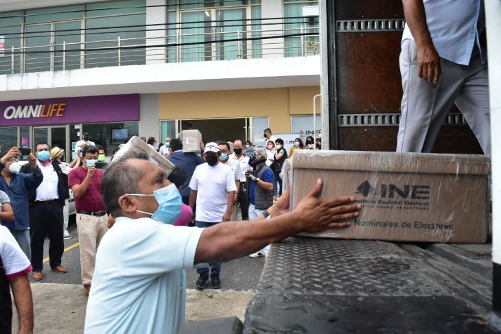 Como se recordará, el pasado 24 de marzo el INE recibió en Campeche las listas nominales, que fueron resguardadas por la Secretaria de Marina Armada de México en las bodegas de las Juntas Distritales Ejecutivas 01 y 02 con cabecera en Campeche y Carmen, mismas que entregan a los partidos políticos; los tantos correspondientes a los Distritos uno será nuevamente resguardada por cualquier eventualidad y otra empaquetada y distribuida con el resto del material electoral a los presidentes de las mesas directivas de casillas a partir de este lunes, como marca la ley correspondiente.