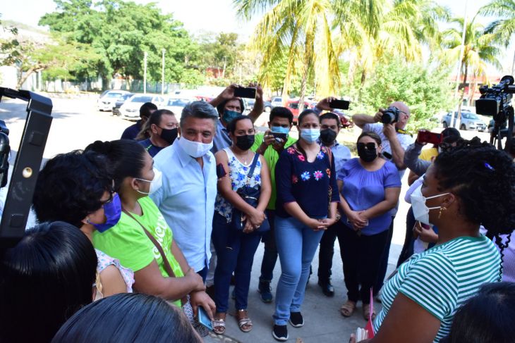 Unos 40 padres de familia llegaron por la mañana a la Secretaría de Educación (Seduc) para exigirle condiciones adecuadas para la escuela Adolfo López Mateos, ubicada a un costado del Centro Histórico de la ciudad, para que mantengan a sus hijos en clases presenciales. El secretario de Educación, Raúl Pozos Lanz, los atendió y les dijo que lamentablemente ya habían invertido recursos en la escuela pero sufrió vandalización y por ello las condiciones en las que se encuentra.