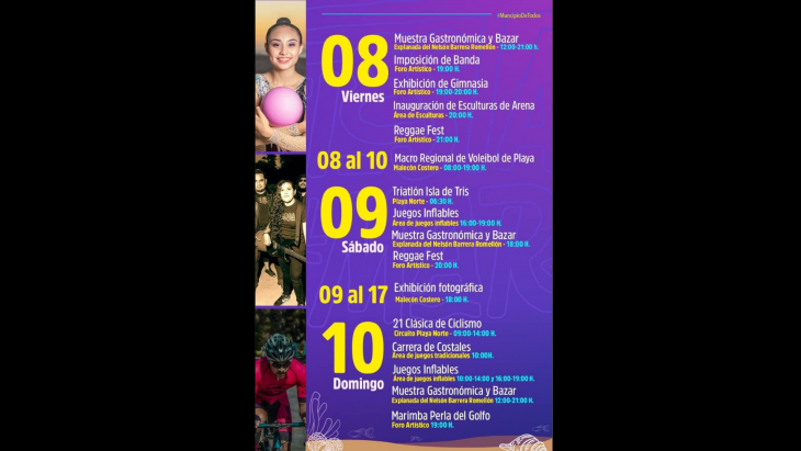 En la parte deportiva, destacó el Macro Regional de Voleibol de Playa y el Concurso Mr. Playa, entre muchos otros eventos de nivel local, regional y nacional, que se estarán desarrollando.