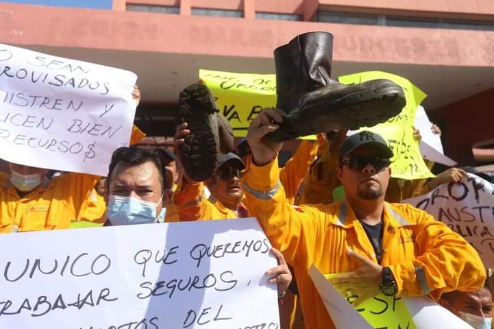 Más de 200 trabajadores de la Región Marina, pertenecientes a la Sección 47 del Sindicato de Trabajadores Petroleros de la República Mexicana, se manifestaron a las afueras del Edificio Administrativo número 1 de la Calle 33 de Ciudad del Carmen, Campeche, ante la falta de la entrega de botas por parte de Petróleos Mexicanos para que puedan realizar su trabajo.
