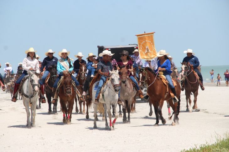 Con la participación de más de 200 personas se llevó a cabo, en el área de Playa Norte, la tradicional Cabalgata 2022 en honor de la virgen del Carmen, misma que fue encabezada por el presidente de la Asociación Ganadera Local, Abraham Cano Rodríguez, y la reina de esta agrupación, Ximena I.