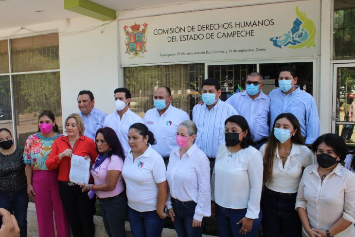 Este martes las diputadas locales priístas Laura Baqueiro Ramos y Diana Mena Campos, acompañadas de la dirigencia estatal y municipal del Partido Revolucionario Institucional (PRI), denunciaron ante la Comisión de los Derechos Humanos del Estado de Campeche (Codhecam) a la gobernadora Layda Sansores San Román, por violencia política en razón de género, calumnias y difamación, tras los comentarios en uno de los programas “Martes del Jaguar” respecto a que poseía fotografías íntimas de diputadas federales y locales, algunas de Campeche, y que según se encontraron en un teléfono celular durante el cateo a la mansión de Alejandro Moreno Cárdenas.
