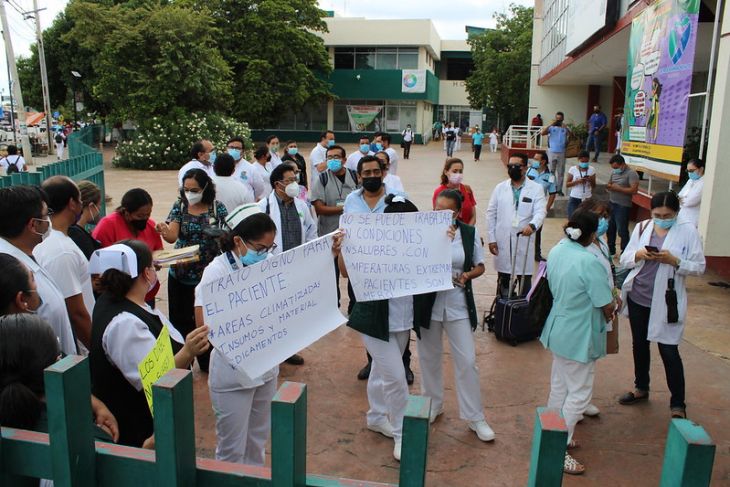 Aunque recientemente arribó a Campeche Zoé Robledo Aburto, director general del Instituto Mexicano del Seguro Social (IMSS), y anunciaron la ampliación de los servicios médicos de la institución de Salud pública, el pasado viernes -y tras más de un mes de no funcionar el sistema de enfriamiento del hospital- trabajadores y cuerpos médicos se manifestaron y señalaron las malas condiciones laborales, así como las carencias del hospital general Zona 1 del IMSS.