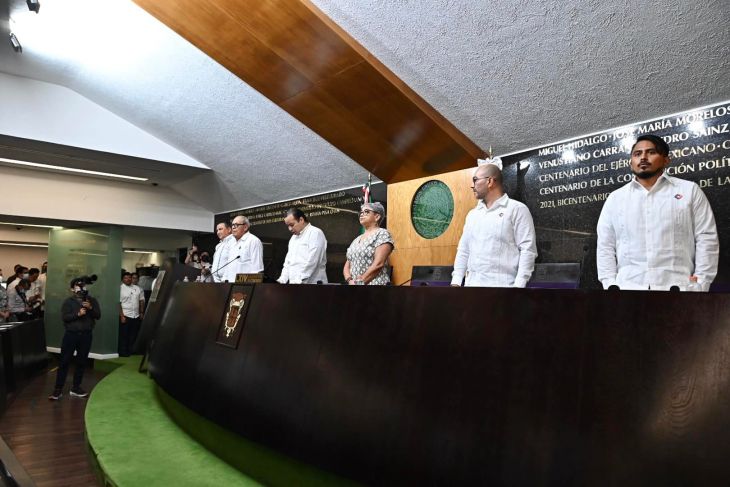 Así, en cumplimiento a lo que dispone la Constitución Política del Estado de Campeche, el secretario de Gobierno, Aníbal Ostoa Ortega, representó personalmente a la gobernadora, y entregó por escrito el primer informe sobre el estado general que guarda la administración pública estatal, que recibió el diputado Alejandro Gómez Cazarín, presidente de la Junta de Gobierno y Administración del Congreso del Estado, acompañados en el presídium por la magistrada presidenta del Tribunal Superior de Justicia del Estado y del Consejo de la Judicatura estatal, Virginia Leticia Lizama Centurión, quien recibió una copia del documento.