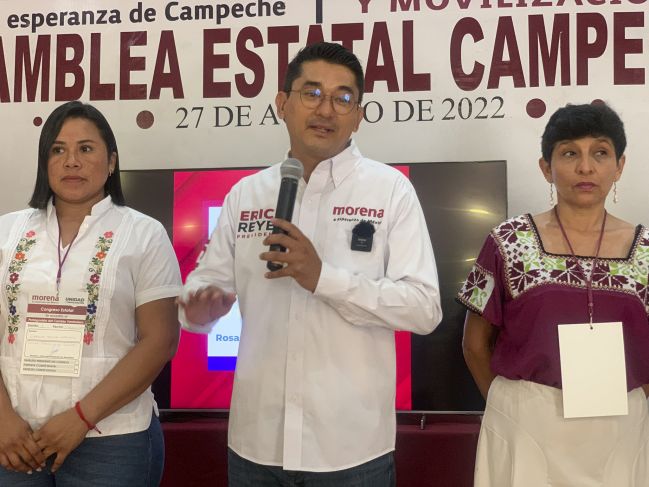 Tras una sesión de un par de horas entre toma de decisiones y consensos, Erick Reyes León fue elegido como nuevo dirigente del Movimiento Regeneración Nacional (Morena) de Campeche, mientras que Elda Esther Clemente Quintana es ahora la secretaria general del partido. Dicha elección fue con la presencia de Aníbal Ostoa Ortega, secretario general de Gobierno que acudió en representación de la gobernadora Layda Sansores San Román.