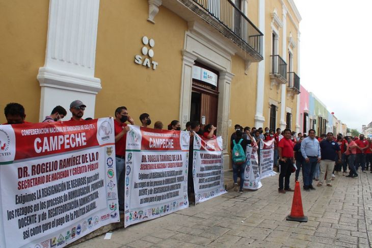 Hace más de cinco años que los trabajadores sindicalizados de los diversos Centros de Estudios Científicos y Tecnológicos de Campeche (Cecyte) no han recibido sus prestaciones de ley debidamente, no les han otorgado las basificaciones por falta de recursos y, en el caso del estado, la Federación no cumple con la erogación de recursos presupuestales en tiempo y forma, lo que ocasionó la marcha y manifestación de al menos 200 trabajadores adheridos al Sindicato de Trabajadores al Servicio del Cecyte en la entidad, dirigida por Hermes Pérez Chan.