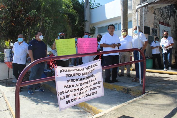 Por presuntas amenazas, presiones laborales y acoso, personal médico del Instituto de Seguridad y Servicios Sociales para los Trabajadores del Estado (Issste), adscrito al Sindicato Nacional de Trabajadores del Issste, se manifestó a las afueras de la clínica Patricio Trueba de Regil (PTR) en la capital de Campeche y denunció malas condiciones en las clínicas y unidades médicas familiares, así como la falta de medicamentos porque, según señalaron los empleados, los administradores están ocupados en todo menos en sus labores en la delegación.