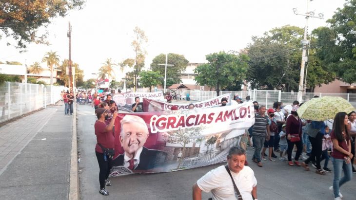 Con lonas y pancartas en manos, en apoyo al presidente de México, Andrés Manuel López Obrador, así como con leyendas de respaldo a las modificaciones realizadas al Instituto Nacional Electoral (INE), los participantes recorrieron la avenida principal de la isla.