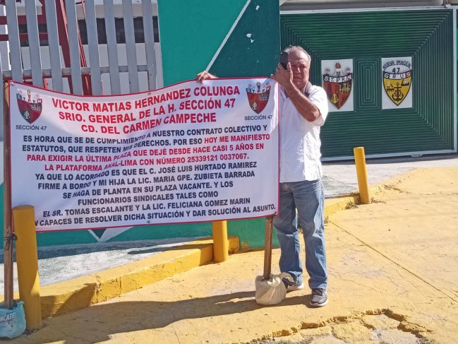 Cansado de las largas que funcionarios de la Sección 47 del Sindicato de Trabajadores Petroleros de la República Mexicana (STPRM); le han dado durante los últimos cinco años, para lograr la firma de la última plaza para su hija, tras su jubilación, lo cual es un derecho consagrado en el Contrato Colectivo de Trabajo (CCT), el petrolero jubilado Olaff Zubieta Ortíz, se manifestó a las puertas de este gremio.