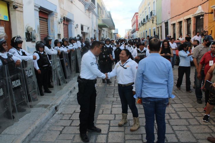 En operativo conjunto, la Secretaría de Protección y Seguridad Ciudadana (SPSC) y el ayuntamiento de Campeche desalojaron a vendedores ambulantes del primer cuadro de la ciudad, quienes en su mayoría estaban instalados sobre la calle 53 entre el Circuito Baluartes y la calle 16 del Centro Histórico.