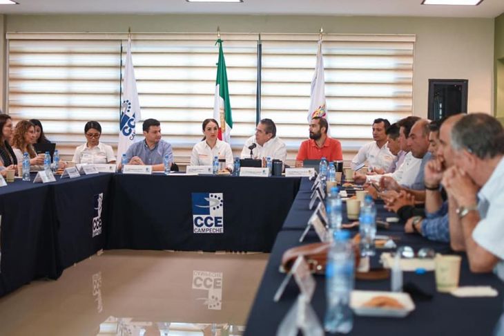 En una reunión encabezada por el presidente del CCE de Campeche, Rafael Ruiz Moreno, Rabelo de la Torre expuso los cinco puntos del Plan de Rescate Económico, escuchó y recogió puntos de vista de los empresarios y refrendó su compromiso de formar alianzas con el sector empresarial.