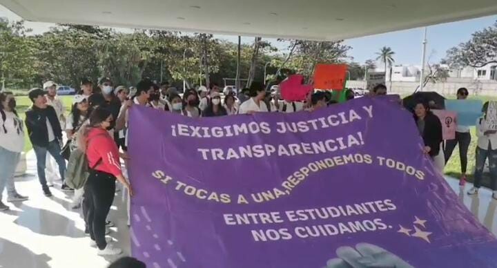 Mientras se llevaba a cabo la audiencia de inicio del juicio oral penal, a las puertas de las Salas de Juicios Orales, estudiantes universitarios de la Facultad de Enfermería se manifestaron para exigir justicia y un proceso transparente.