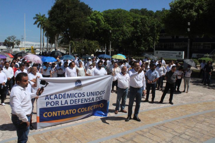 Tras marchar de la sede del sindicato al campus central de la Universidad Autónoma de Campeche (UAC), integrantes del Sindicato Único de Profesionales Académicos de la Universidad Autónoma de Campeche (Supauac) liderados por Joaquín Berzunza Valladares, anunciaron estallamiento de huelga si la rectoría de la UAC no deja de meter amparos contra la elección da la dirigencia pasada, si no les da una explicación sobre los empleados despedidos y si no cumplen con los aumentos salariales especificados en el contrato colectivo vigente.