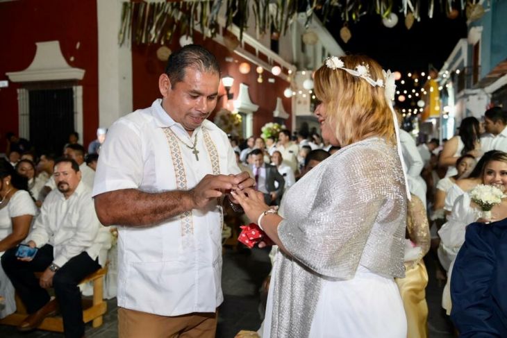 Teniendo como escenario el Centro Histórico de Carmen, en una noche llena de amor y romanticismo, más de 200 parejas unieron sus vidas con el matrimonio civilmen el marco de las Bodas Colectivas 2023, una cifra histórica en este tipo de eventos.