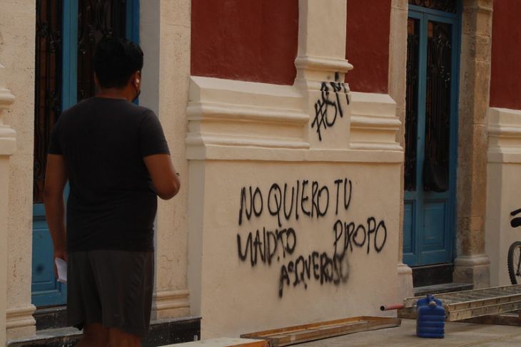 A casi 24 horas de la marcha feminista para conmemorar al 8M, el presidente de la Asociación de Empresarios Restauranteros de la Calle 59, Francisco Estrada Gómez, aseguró no realizarán denuncias, pues las paredes se recuperan, pero una vida no; sin embargo propuso a que ante la permisión de estos actos, autoridades deberían llegar a un acuerdo con las manifestantes para que luego desmanchen las paredes.