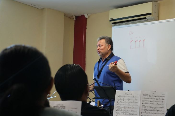 Impartido por Faustino Díaz, Abel Sánchez y Cecilia Becerra, cerca de 60 concertistas pertenecientes a diferentes agrupaciones del estado y grupos independientes, fortalecen sus conocimientos y el trabajo en el quehacer cultural con este diplomado enfocado al estilo popular, un proyecto novedoso en el país, iniciativa del galardonado maestro trombonista Faustino Díaz.